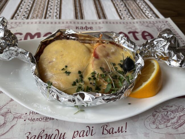 Сом під помідором та сиром